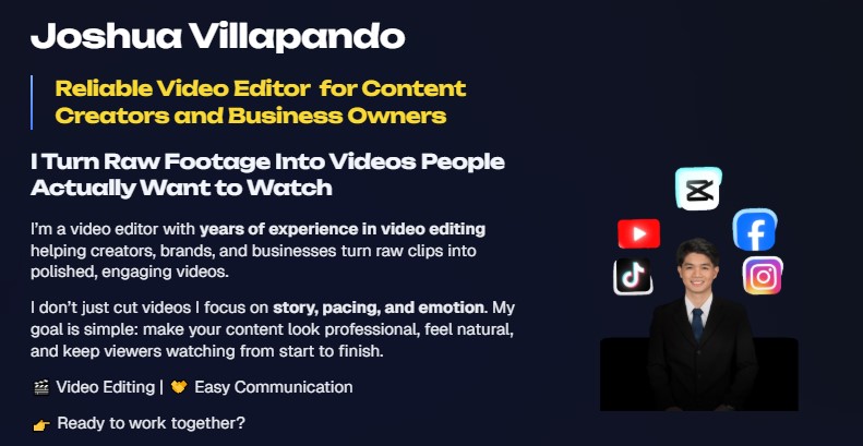 I craft intentional edits that elevate brands through clarity, precision, and impact. Every cut serves a purpose, aligned with your voice and audience. With a streamlined process, clear communication, and on time delivery, I offer a reliable, collaborative editing experience focused on high quality results.